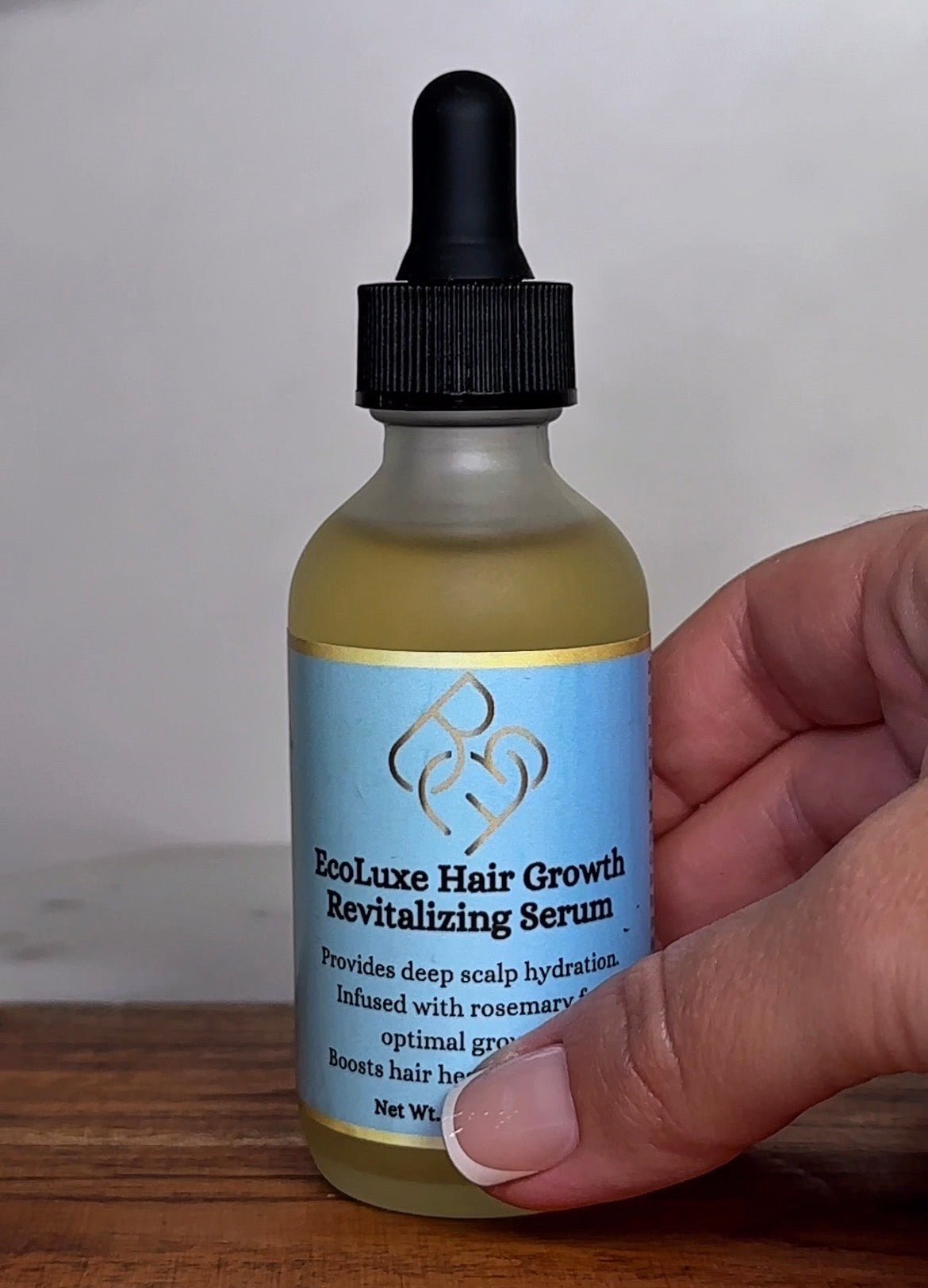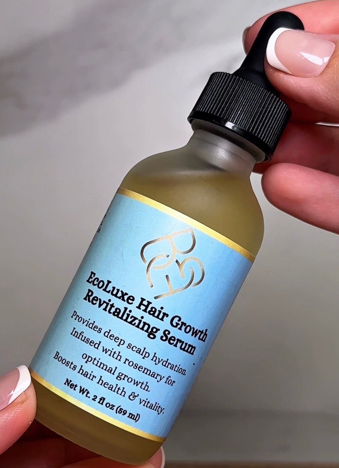 EcoLuxe Hair Revitalizing Serum is formulated with botanical ingredients to support scalp hydration and help improve the appearance of hair vitality. This lightweight, non-greasy serum includes rosemary extract, ginger root extract, and a blend of Chlorella Emersonii and Spirulina Maxima extracts, known for their conditioning properties.